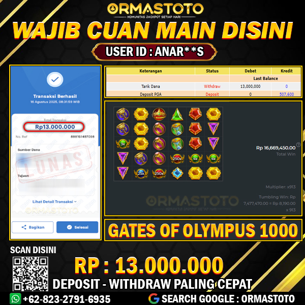 BUKTI JACKPOT WEDE MENANG BESAR DI GAME GATES OF OLYMPUS 1000 LANGSUNG WD 6 JUTA SUDAH DIBAYAR LUNAS ormastoto, 14 Agustus 2025 MENANG BESAR DI GAME GATES OF OLYMPUS 1000 LANGSUNG WD 6 JUTA SUDAH DIBAYAR LUNAS Selamat kepada User id : AM******12Telah berhasil mendapatkan kemenangan besar pada permainan SLOT GATES OF OLYMPUS 1000 (PRAGMATIG) kemenangan Sebesar Rp 6.000.000 Setelah mengisi formulir withdraw dengan kurung waktu hanya 5 – 10 menit pihak Ormastoto sudah melakukan transfer kepada pemilik Userid… Continue Reading