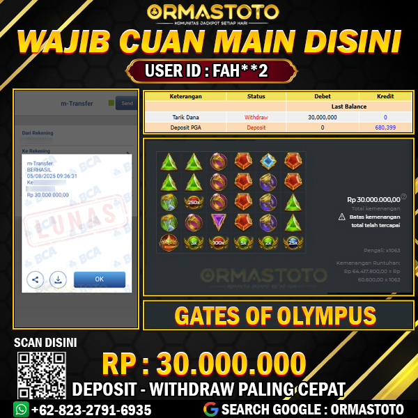Uncategorized Meledak Digame Lagendaris Gates Of Olympus Rp30.000.000 Auto Jadi Sultan! ormastoto, 5 Agustus 2025 Platform game slot ORMASTOTO kembali menunjukkan bukti nyata kemenangan besar yang bikin banyak pemain makin semangat bermain! Salah satu member dengan ID FAH**2 berhasil meraih kemenangan fantastis senilai RP 30.000.000 hanya dari satu permainan di game legendaris GATES OF OLYMPUS. Bukti transfer langsung dari m-BCA sudah terlampir lengkap, menandakan proses… Continue Reading