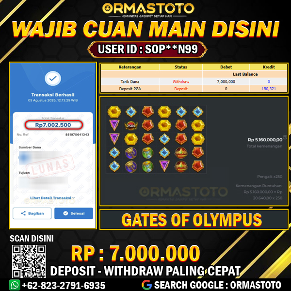 Uncategorized Wajib Cuan di Ormastoto! Bukti Tarik Dana Rp 7 Juta Langsung Cair! ormastoto, 3 Agustus 2025 Siapa bilang cuan dari game slot cuma mimpi? Di Ormastoto, mimpi jadi kenyataan! Salah satu member dengan ID SOP**N99 berhasil membuktikan sendiri dengan withdraw Rp 7.000.000 dari game legendaris Gates of Olympus! Bukti transaksi nyata pun sudah ada, lengkap dan jelas — gak pakai tipu-tipu! Dalam satu sesi bermain, pemain… Continue Reading