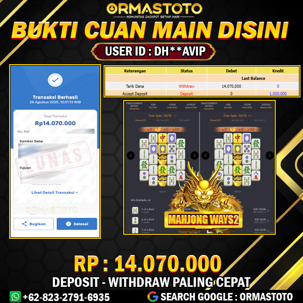 Bukti Jackpot Ormastoto: Menang Rp 14.070.000 di Mahjong Ways 2 ormastoto, 28 Agustus 2025 Ormastoto kembali menghadirkan bukti nyata kemenangan member yang berhasil membawa pulang cuan besar dari permainan slot online populer Mahjong Ways 2. Pada tanggal 28 Agustus 2025, salah satu member dengan User ID DH**AVIP berhasil melakukan penarikan sebesar Rp 14.070.000. Transaksi withdraw ini berjalan cepat, aman, dan tanpa hambatan, membuktikan bahwa Ormastoto memang menjadi pilihan utama bagi para pecinta slot online di Indonesia. Dengan sistem deposit dan withdraw tercepat, setiap kemenangan dapat langsung dicairkan kapan saja tanpa menunggu lama. Mengapa Pilih Ormastoto? Bukti Cuan Nyata β Member rutin melakukan penarikan hingga jutaan rupiah setiap harinya. Permainan Populer β Tersedia berbagai game gacor, salah satunya Mahjong Ways 2 yang terkenal memberikan kemenangan berlipat. Transaksi Kilat β Deposit dan withdraw bisa dilakukan hanya dalam hitungan menit. Layanan 24 Jam β Customer service siap melayani kapan pun. Mahjong Ways 2: Slot Favorit Pemburu Jackpot Game Mahjong Ways 2 menjadi salah satu slot paling banyak dimainkan karena memiliki fitur Free Spin dan Multiplier yang bisa melipatgandakan kemenangan hingga x10. Tak heran jika banyak member Ormastoto berhasil meraih jackpot besar hanya dengan modal kecil. Saatnya Cuan Bersama Ormastoto Jangan hanya melihat bukti, sekarang giliran Anda untuk membuktikannya! Daftar dan mainkan slot gacor di Ormastoto, rasakan sensasi kemenangan berlipat serta proses withdraw tercepat. Bukti cuan Rp 14.070.000 ini menjadi saksi nyata bahwa Ormastoto adalah tempat terbaik untuk berburu jackpot setiap hari. Berikut ini merupakan informasi penting tentang situs Ormastoto yang tidak dapat di jumpai pada bandar togel lainnya seperti : Minimum Deposit : Rp. 10.000,- Minimum Withdraw : Rp. 30.000,- Diskon Togel : 4D = 66.5% | 3D = 59.5% | 2D = 29.5% ( Semua Pasaran Togel ) Minimal Betting Togel : Rp. 100,- Pasaran Togel Terbaik : Totomacau, Togel Singapore, Togel Sydney, Togel Hongkong Pilihan Mata Uang : Indonesia Rupiah (IDR) Pilihan Bank : Bank (BCA, BRI, BNI, DANAMON, MAYBANK, BSI, PERMATA, PANIN,DANA,OVO,LINKAJA,GOPAY) Platform : iOS, Android, Windows Salah satu layanan judi terbaik yang diunggulkan ORMASTOTO lewat layanan judinya adalah adanya fitur livechat 24 jam. Livechat sendiri menjadi sebuah fitur yang sangat penting yang pasti selalu disediakan situs penyedia layanan judi online terpercaya seperti ORMASTOTO. Karena dengan livechat 24 jam, para pemain atau member bisa selalu mudah terhubung pada layanan customer service ketika menemukan kendala atau masalah maupun jika ingin mengetahui informasi lebih lengkap terkait dengan layanan judi ORMASTOTO melalui layanan CS 24 jam. BURUAN GABUNG DENGAN ORMASTOTO BANYAK PROMONYA π£π₯π’π π’ π§ππ π§ππ₯πππ§ππ¦ π πππ‘ π¦ππ ππππ‘ π¦ππ₯π¨ ππ π’π₯π ππ¦π§π’π§π’ ββ€ π½ππππ πππ ππππ½ππ 50%ββ€ π½ππππ ππππππππΌπ ππππ 0,5%ββ€ π½ππππ ππΌπππΌπ 5%ββ€ π½ππππ πππ ππππ½ππ 10%ββ€ π½ππππ πΎπΌπππ½πΌπΎπ 10%ββ€ π½ππππ πππππππΌπ 1%ββ€ π½ππππ πππππΌ ππππππππ ππππ ππ ππ ππ₯ 5,000,000,- ββ€ πππππ ππππππΌπππΌπ ππΌππ πππ ππππ 3ββ€ πππππ ππππππππ 20% & π½ππ ππππ 10%ββ€ πππππ ππΎπΌππππ πππΌππΌπππββ€ πππππ ππΌππππΌπ πππππββ€ πππππ π½πππΌπΏπΌππ πππππΌ πΏππππππ ++ββ€ πππππ π-π½πππ π½πππΌπππΌ ππΌππππββ€ πππππ ππππ½πΌππ π½ππππΌππΌ πππΌπΎπππΌπββ€ πππππ πππππΌ π ππππ π πππππ πππ₯π πππ π ππ ππ’π’πππ : π’π₯π ππ¦π§π’π§π’πππ‘π : https://heylink.me/ormastoto Ayo segera daftarkan diri anda pada situs terpercaya kami hanya di ormastoto . Untuk info pendaftaran lebih lanjut boleh hubungi kontak dibawah ini : Link Alternatif : Www.Ormastotomax.comWhatsapp : +62-85-92439-4883Telegram : @Ormastoto3 Uncategorized