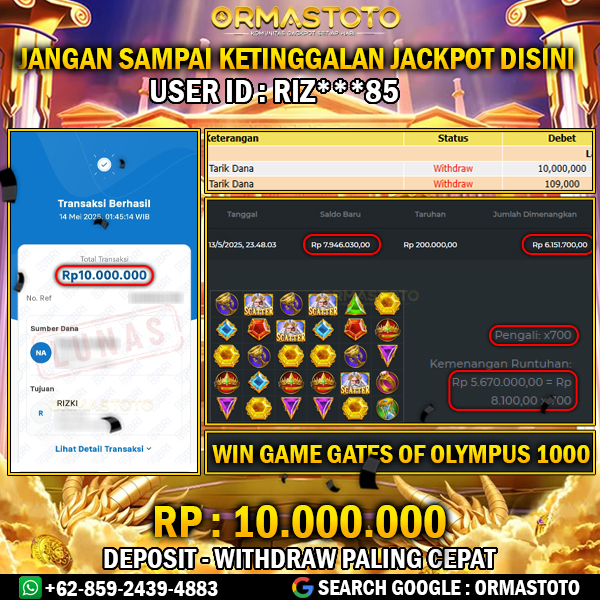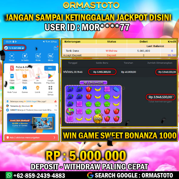 BUKTI JACKPOT WEDE ORMASTOTO LAGI BAGI BAGI CUAN DI GAME PRAGMATIG AKUN BARU LANGSUNG WD 10JUTA SUDAH DIBAYAR LUNAS ormastoto, 14 Mei 2025 ORMASTOTO LAGI BAGI BAGI CUAN DI GAME PRAGMATIG AKUN BARU LANGSUNG WD 10JUTA SUDAH DIBAYAR LUNAS Selamat kepada User id : RIZ****85 Telah berhasil mendapatkan kemenangan besar pada permainan SLOT GATES OF OLYMPUS 1000 (PRAGMATIG) kemenangan Sebesar Rp 10.000.000 Setelah mengisi formulir withdraw dengan kurung waktu hanya 5 – 10 menit pihak Ormastoto sudah melakukan transfer kepada pemilik… Continue Reading