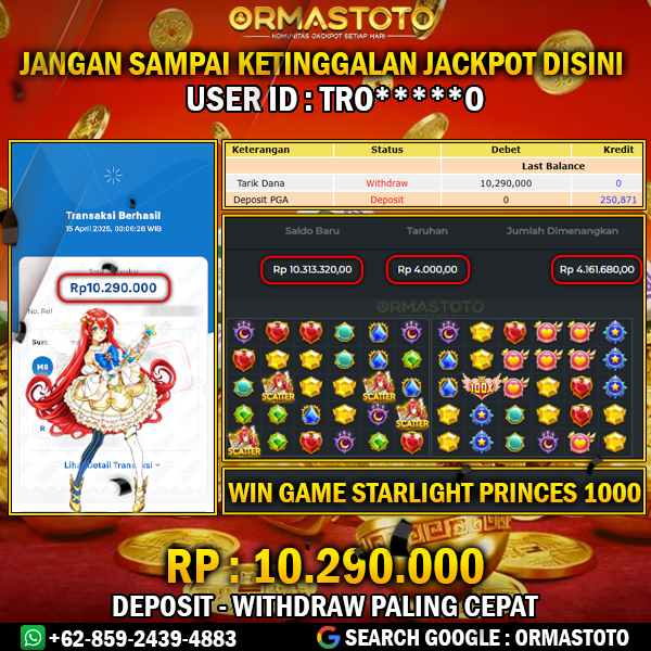 BUKTI JACKPOT WEDE MENANG BESAR DI GAME STARLIGHT PRINCES 1000 RP 10,290,000 SUDAH DIBAYAR LUNAS ormastoto, 15 April 202515 April 2025 MENANG BESAR DI GAME STARLIGHT PRINCES 1000 RP 10,290,000 SUDAH DIBAYAR LUNAS Selamat kepada User id : TRO******O Telah berhasil mendapatkan kemenangan besar pada permainan SLOT STARLIGHT PRINCES 1000 (PRAGMATIG) kemenangan Sebesar Rp 10.290.000 Setelah mengisi formulir withdraw dengan kurung waktu hanya 5 – 10 menit pihak Ormastoto sudah melakukan transfer kepada pemilik Userid dan dana sudah… Continue Reading