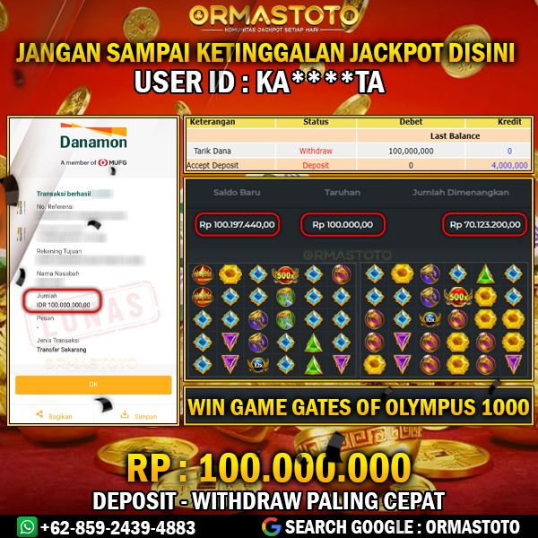 BUKTI JACKPOT WEDE MENANG BESAR PAUS RP 100,000,000 MENDAPATKAN PERKALIAN 500 BETTINGAN 100RB DI GAME GATES OF OLYMPUS 1000 ormastoto, 13 April 202513 April 2025 MENANG BESAR PAUS RP 100,000,000 MENDAPATKAN PERKALIAN 500 BETTINGAN 100RB DI GAME GATES OF OLYMPUS 1000 Selamat kepada User id : KA****TA Telah berhasil mendapatkan kemenangan besar pada permainan SLOT GATES OF OLYMPUS 1000 (PRAGMATIG) kemenangan Sebesar Rp 100.000.000 Setelah mengisi formulir withdraw dengan kurung waktu hanya 5 – 10 menit pihak Ormastoto sudah melakukan transfer kepada… Continue Reading
