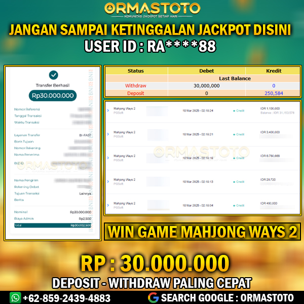 BUKTI JACKPOT WEDE MENANG DI GAME MAHJONG WAYS 2 SEBESAR RP : 7,800,000,- LUNAS ormastoto, 22 Maret 202522 Maret 2025 ✨MENANG DI GAME MAHJONG WAYS 2 SEBESAR RP : 7,800,000,- LUNAS✨ Selamat kepada User id : KI***22 Telah berhasil mendapatkan kemenangan besar pada permainan SLOT MAHJONG WAYS 2 kemenangan Sebesar Rp.7.800.000, Setelah mengisi formulir withdraw dengan kurung waktu hanya 5 – 10 menit pihak Ormastoto sudah melakukan transfer kepada pemilik… Continue Reading