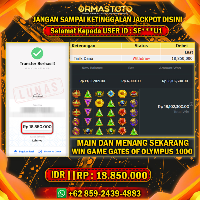 BUKTI JACKPOT WEDE MAXWIN DI OLYMPUS 1000 STAKE 4K DAPAT PERKALIAN 500++ || SUDAH DIBAYAR LUNAS ormastoto, 20 Juli 2025 MAXWIN DI OLYMPUS 1000 STAKE 4K DAPAT PERKALIAN 500++ || SUDAH DIBAYAR LUNAS Selamat kepada User id : SE****U1 Telah berhasil mendapatkan kemenangan besar pada permainan SLOT GATES OF OLYMPUS 1000 (PRAGMATIG) kemenangan Sebesar Rp 18.850.000 Setelah mengisi formulir withdraw dengan kurung waktu hanya 5 – 10 menit pihak Ormastoto sudah melakukan transfer kepada pemilik Userid dan dana… Continue Reading