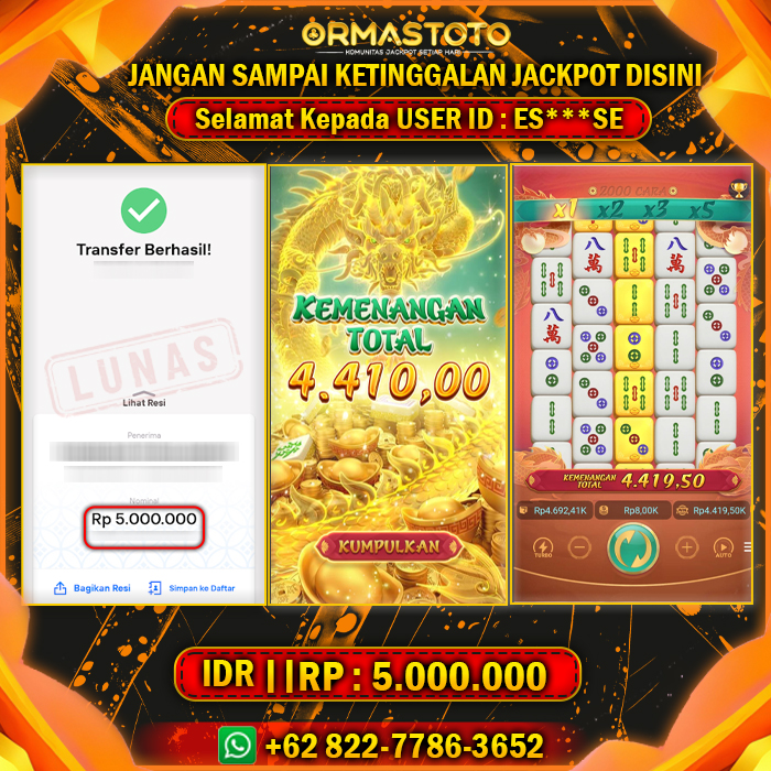 BUKTI JACKPOT WEDE MENANG DI MAHJONG WAYS STAKE 8K WD LANGSUNG 5 JUTA DI ORMASTOTO ormastoto, 19 Juli 2025 MENANG DI MAHJONG WAYS STAKE 8K WD LANGSUNG 5 JUTA DI ORMASTOTO Selamat kepada User id : ES***SE Telah berhasil mendapatkan kemenangan besar pada permainan SLOT MAHJONG WAYS (PG SOFT) kemenangan Sebesar Rp 5.000.000 Setelah mengisi formulir withdraw dengan kurung waktu hanya 5 – 10 menit pihak Ormastoto sudah melakukan transfer kepada pemilik Userid dan dana sudah dapat… Continue Reading