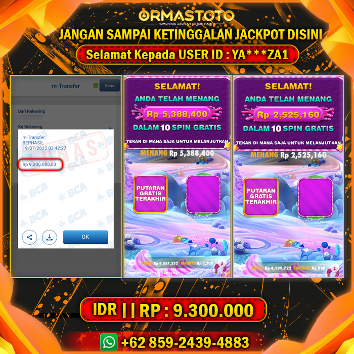 BUKTI JACKPOT WEDE CUAN 9,3JUTA DI GAME SWEET BONANZA SUDAH DIBAYAR LUNAS DI ORMASTOTO ormastoto, 19 Juli 2025 CUAN 9,3JUTA DI GAME SWEET BONANZA SUDAH DIBAYAR LUNAS DI ORMASTOTO Selamat kepada User id : YA****ZA1 Telah berhasil mendapatkan kemenangan besar pada permainan SLOT SWEET BONANZA (PRAGMATIG) kemenangan Sebesar Rp 9.300.000 Setelah mengisi formulir withdraw dengan kurung waktu hanya 5 – 10 menit pihak Ormastoto sudah melakukan transfer kepada pemilik Userid dan dana sudah dapat di cairkan… Continue Reading