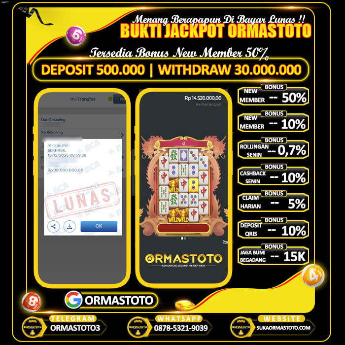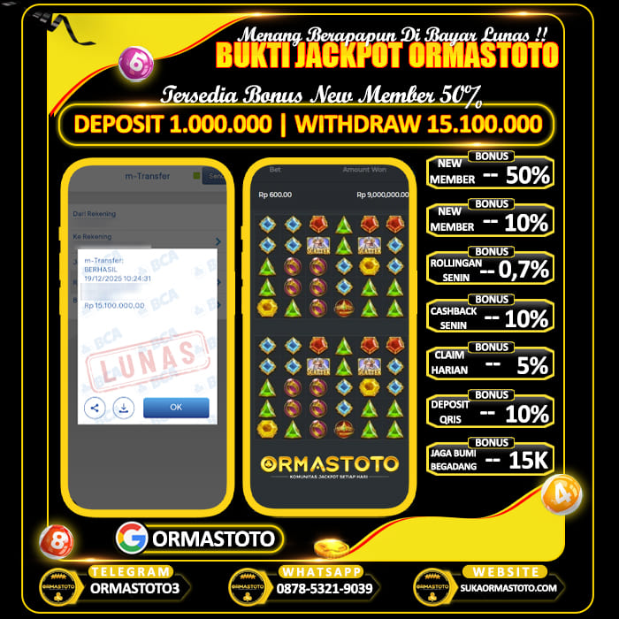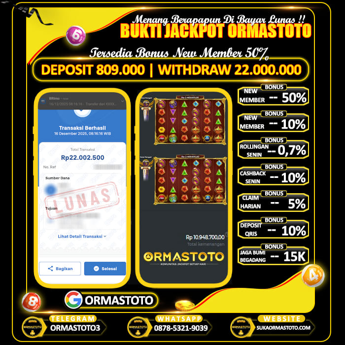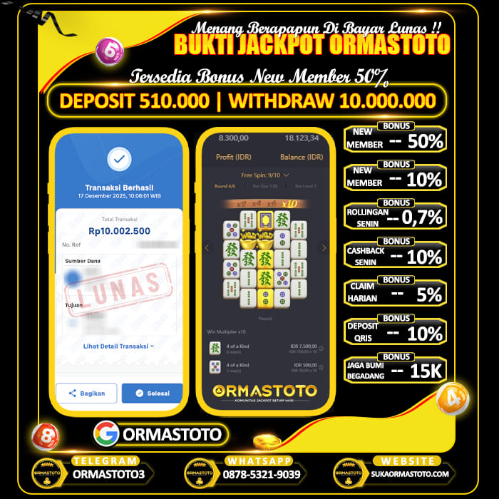 Uncategorized ORMASTOTO : Tempat Cuan Setiap Hari Main Slot Mahjong Ways ormastoto, 17 Desember 2025 Kemenangan besar kembali terjadi di ORMASTOTO! Seorang member berhasil membuktikan bahwa situs ini benar-benar membayar berapapun kemenangan tanpa drama!Dengan deposit hanya Rp510.000, pemain tersebut sukses melakukan withdraw Rp10.000.000, dan transaksi langsung berhasil dengan status LUNAS! Bukti Pembayaran Asli & Terverifikasi Pada gambar di atas terlihat jelas, transfer senilai Rp10.000.000 berhasil… Continue Reading