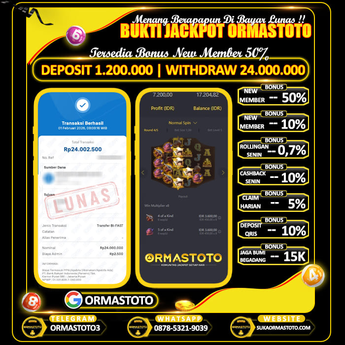 Uncategorized ORMASTOTO : Cair Di Wild Bounty Masuk Ke Rekening Rp24.000.000 ormastoto, 1 Februari 2026 Kemenangan besar kembali terjadi di ORMASTOTO! Seorang member berhasil membuktikan bahwa situs ini benar-benar membayar berapapun kemenangan tanpa drama!Dengan deposit hanya Rp1.200,000, pemain tersebut sukses melakukan withdraw Rp24,000,000, dan transaksi langsung berhasil dengan status LUNAS! Bukti Pembayaran Asli & Terverifikasi Pada gambar di atas terlihat jelas, transfer senilai Rp24,000,000 berhasil… Continue Reading