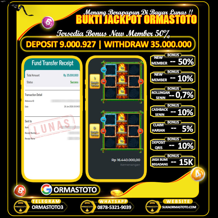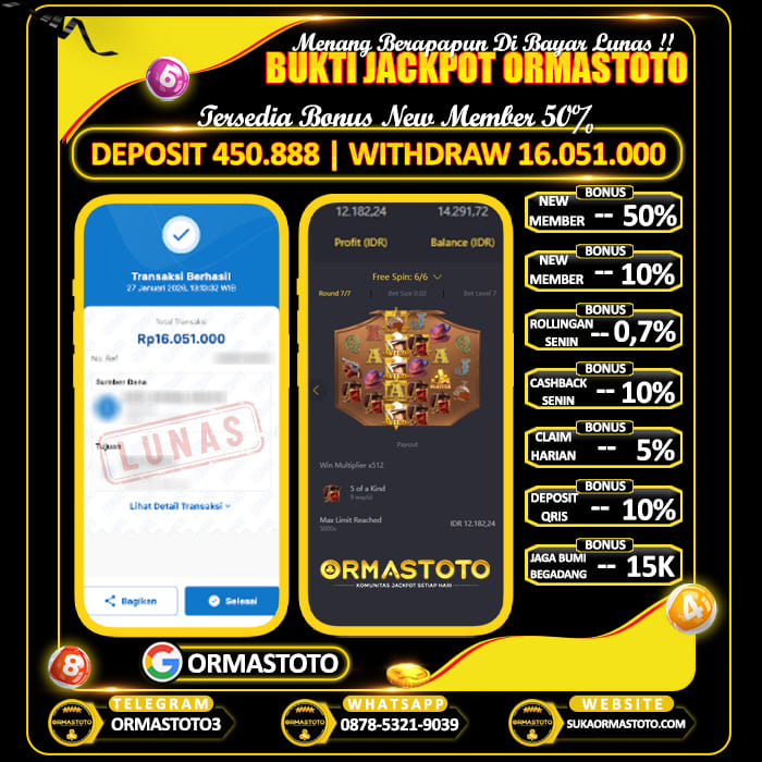Uncategorized ORMASTOTO : Wild Bounty Bikin Cuan Sampai Rp16.000.000 Sah Jackpot! ormastoto, 27 Januari 2026 Kemenangan besar kembali terjadi di ORMASTOTO! Seorang member berhasil membuktikan bahwa situs ini benar-benar membayar berapapun kemenangan tanpa drama!Dengan deposit hanya Rp450,888, pemain tersebut sukses melakukan withdraw Rp16,051,000, dan transaksi langsung berhasil dengan status LUNAS! Bukti Pembayaran Asli & Terverifikasi Pada gambar di atas terlihat jelas, transfer senilai Rp16,051,000 berhasil… Continue Reading