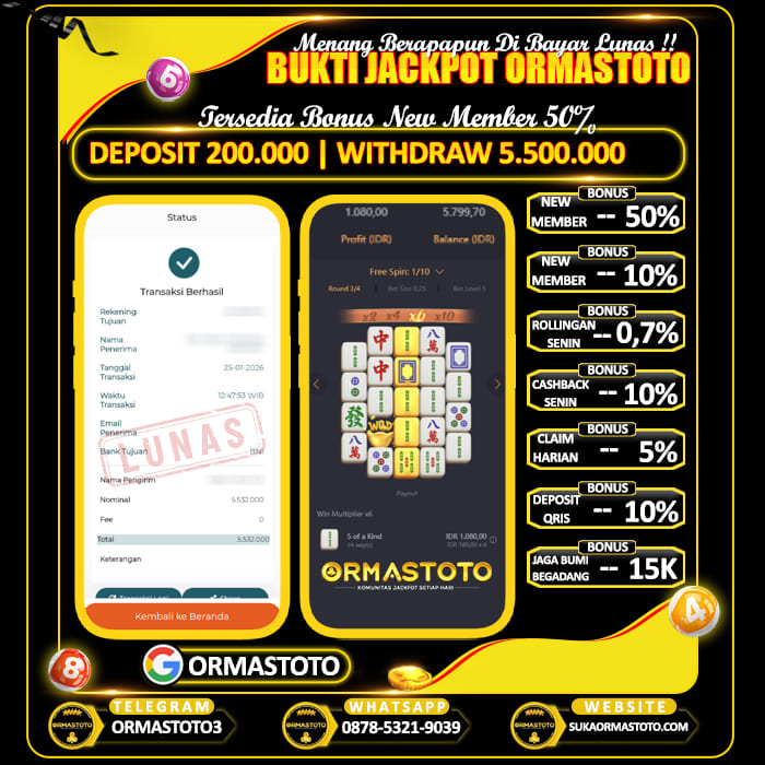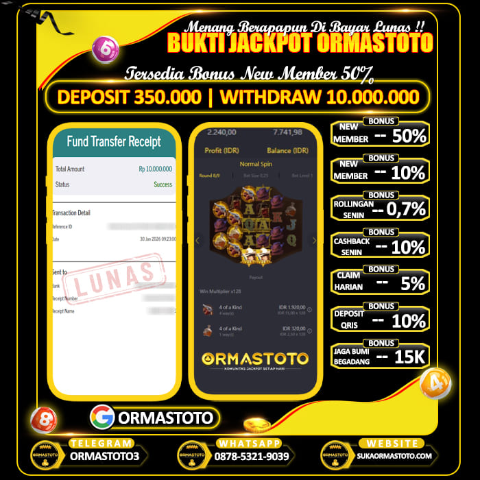 Uncategorized ORMASTOTO : Asik Main Di Wild Bounty Cair Rp10.000.000 Cuman Modal Rp350.000 ormastoto, 30 Januari 2026 Kemenangan besar kembali terjadi di ORMASTOTO! Seorang member berhasil membuktikan bahwa situs ini benar-benar membayar berapapun kemenangan tanpa drama!Dengan deposit hanya Rp350,000, pemain tersebut sukses melakukan withdraw Rp10,000,000, dan transaksi langsung berhasil dengan status LUNAS! Bukti Pembayaran Asli & Terverifikasi Pada gambar di atas terlihat jelas, transfer senilai Rp10,000,000 berhasil… Continue Reading