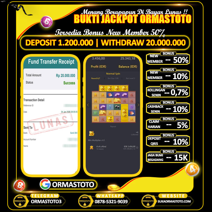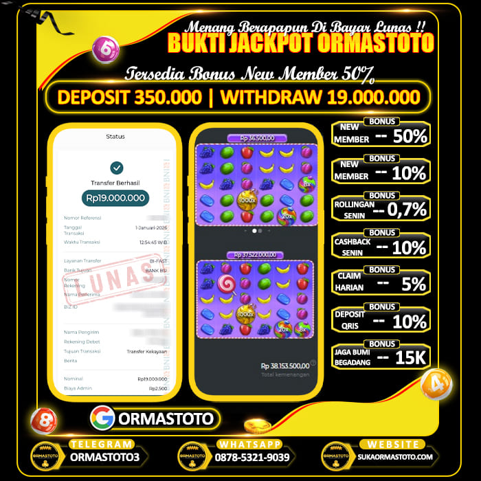 Uncategorized ORMASTOTO : Awal Tahun Yang Baik Main Di Sweet Bonanza ormastoto, 1 Januari 2026 Kemenangan besar kembali terjadi di ORMASTOTO! Seorang member berhasil membuktikan bahwa situs ini benar-benar membayar berapapun kemenangan tanpa drama!Dengan deposit hanya Rp350.000, pemain tersebut sukses melakukan withdraw Rp19.000.000, dan transaksi langsung berhasil dengan status LUNAS! Bukti Pembayaran Asli & Terverifikasi Pada gambar di atas terlihat jelas, transfer senilai Rp19.000.000 berhasil… Continue Reading